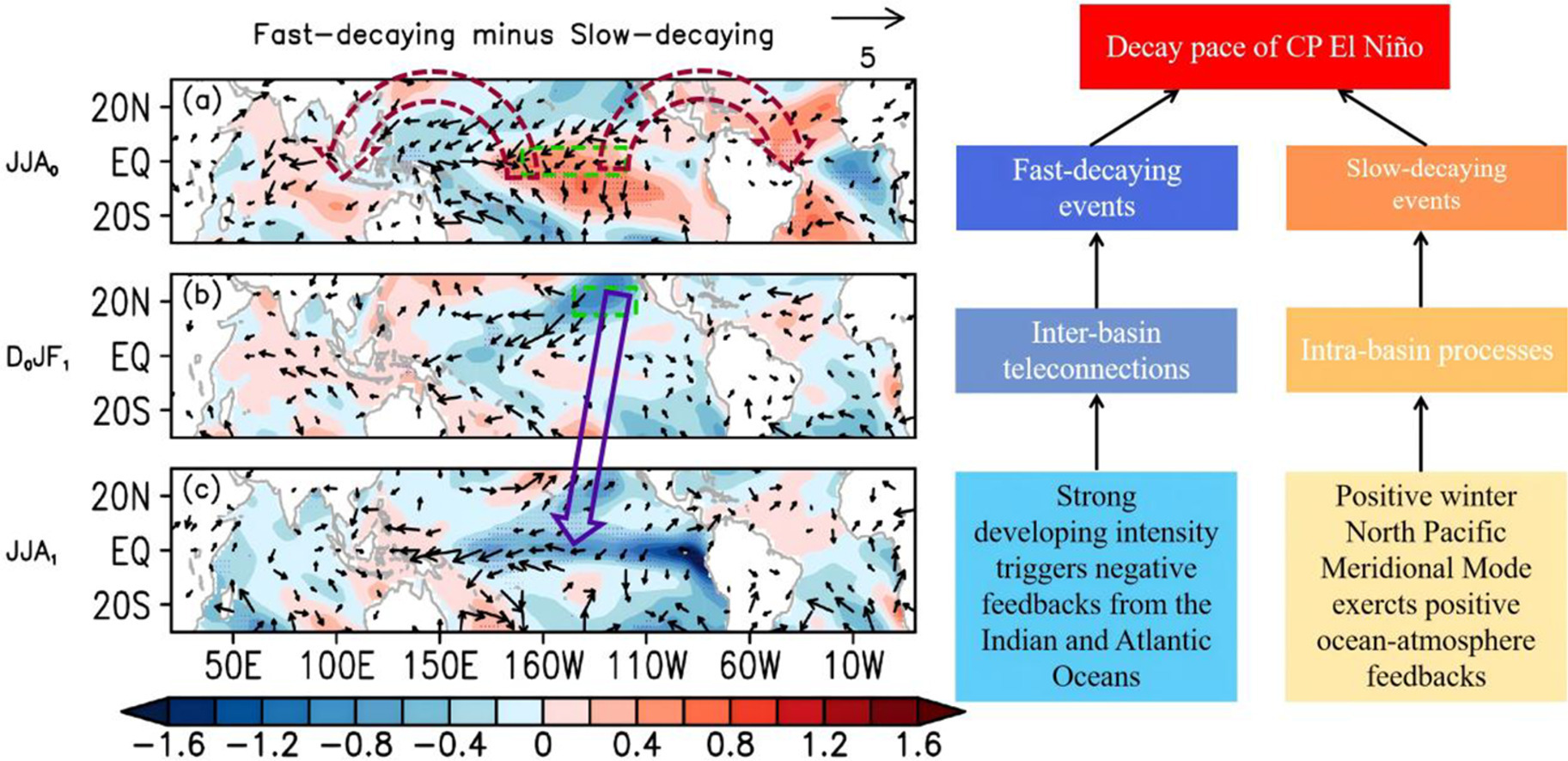 Distinct pantropical climate interactions modulate the decay pace of Central Pacific El Niño events