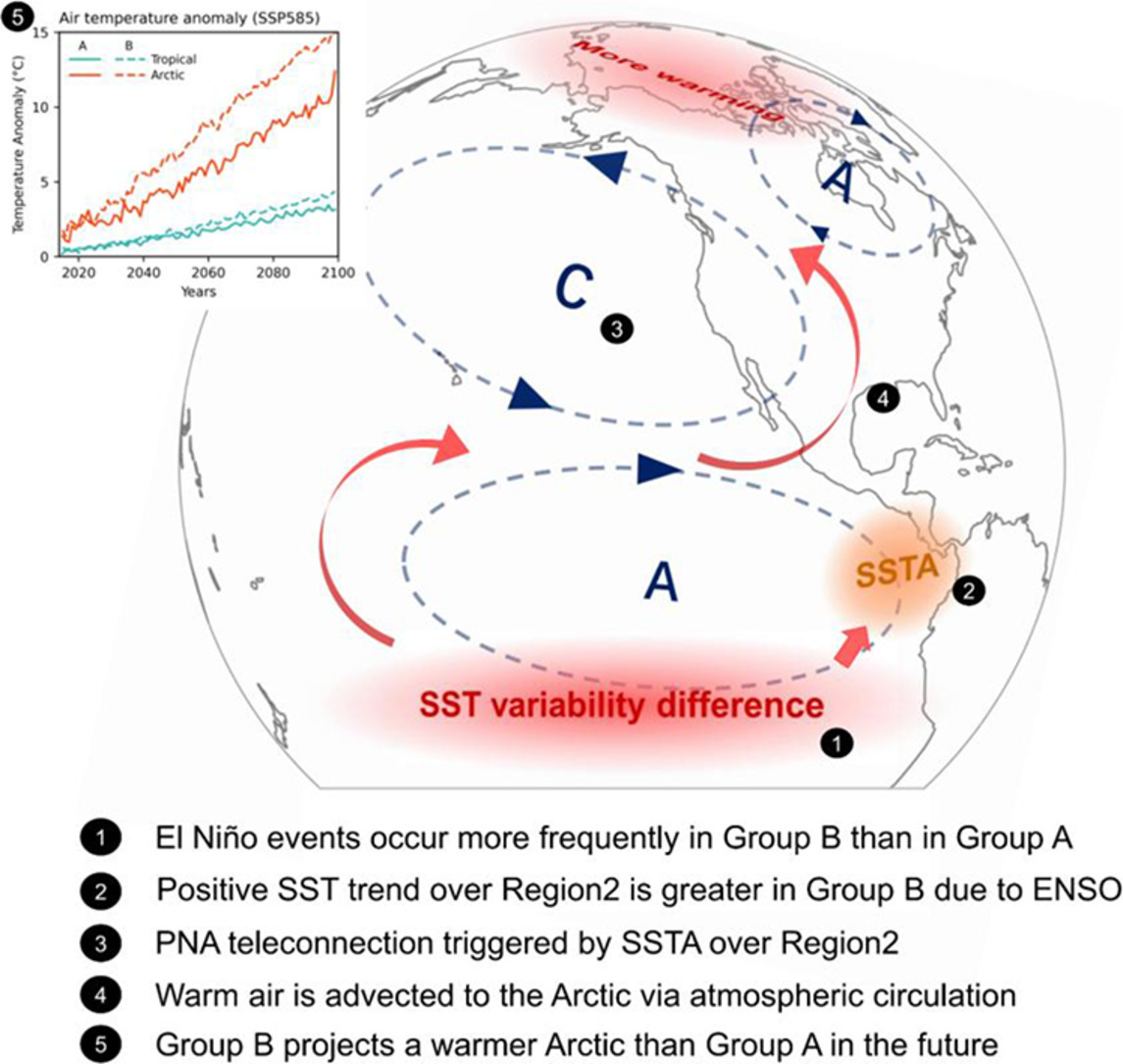 Feedback of Tropics–Arctic linkages to Northern Hemisphere warming might be modulated by ENSO diversity in the future