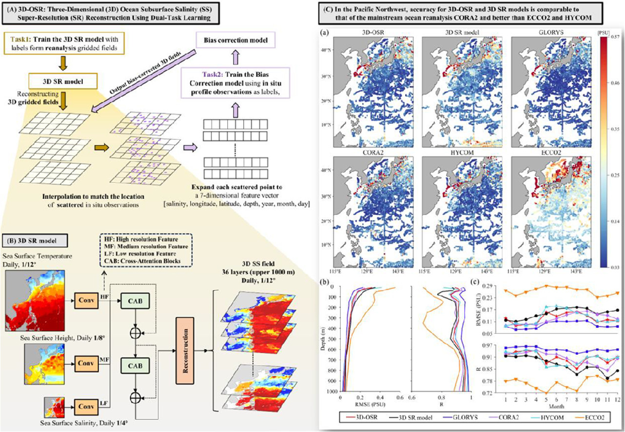 3D-OSR: Three-dimensional ocean salinity super-resolution reconstruction from remote sensing observations using dual-task learning