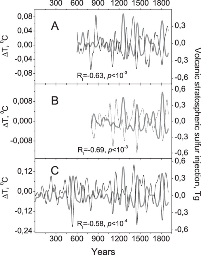 Evidence for a link between century-scale temperature variations in the Northern Hemisphere and long-term changes in volcanic activity