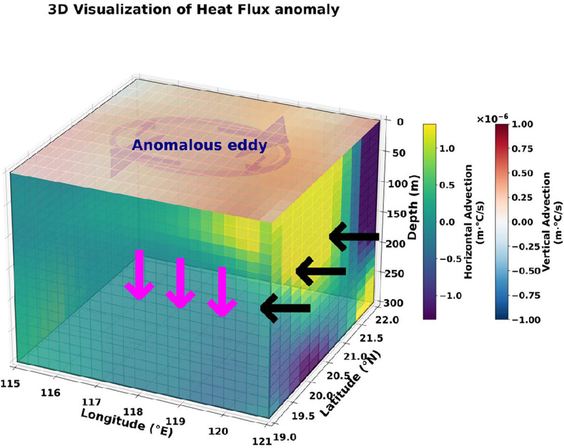Luzon Strait heat transport and mesoscale eddies’ enhancement effect on boreal winter subsurface marine heatwaves in the South China Sea